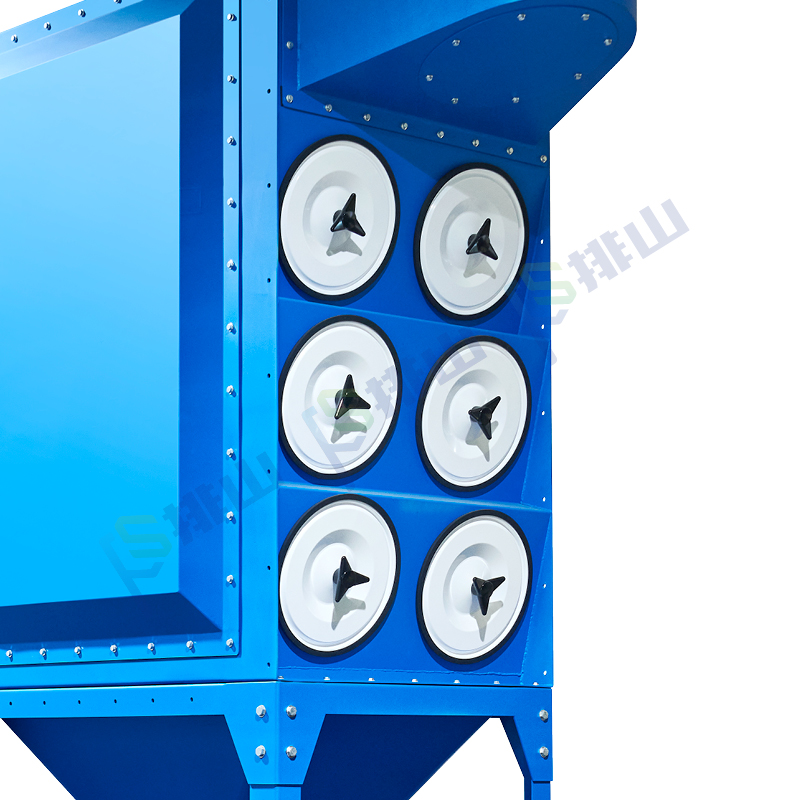 3.進風(fēng)口處設(shè)置導(dǎo)流板,用于防止粉塵直接沖刷濾筒,從而延長濾筒使用壽命。